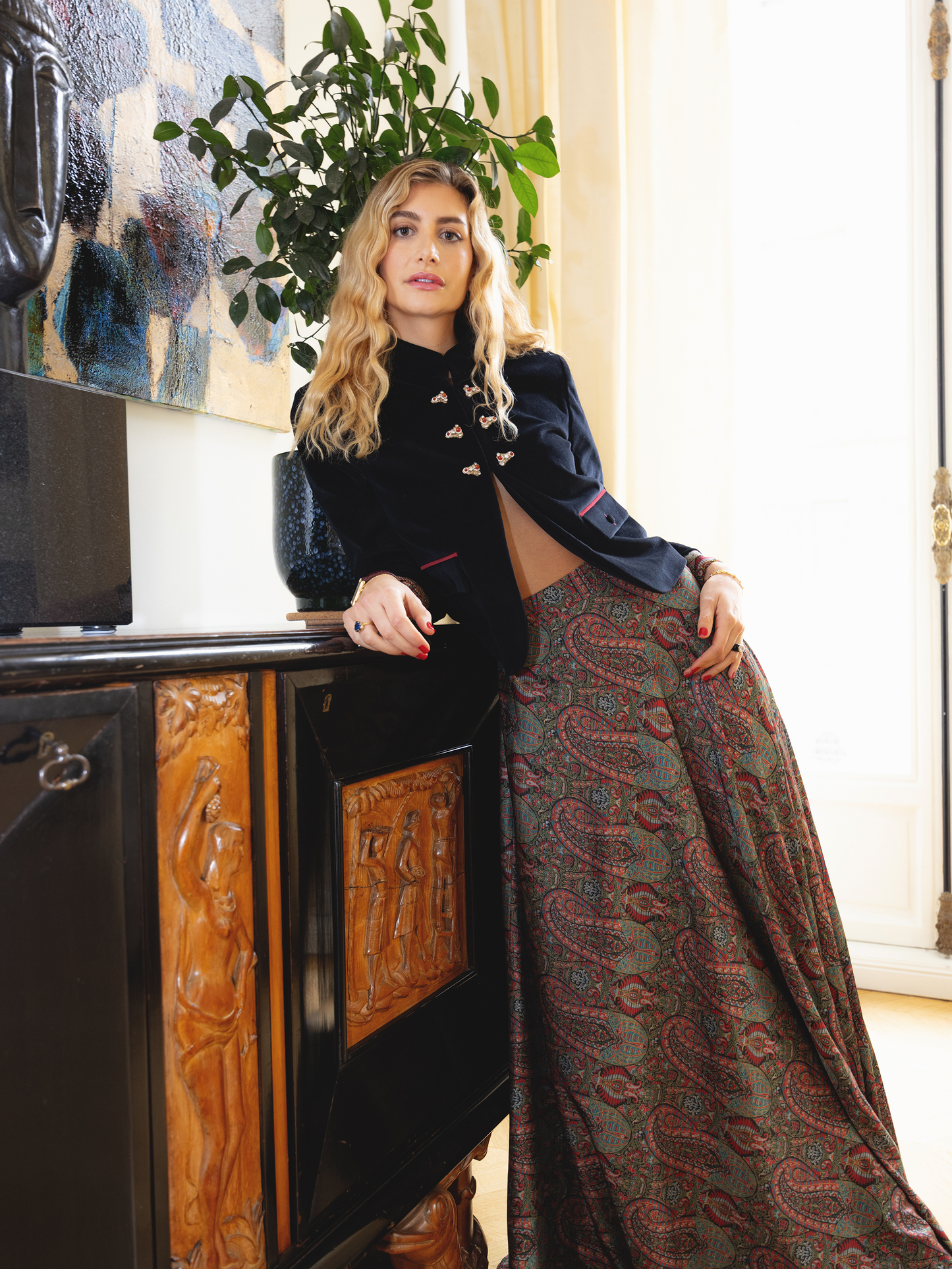Persian motifs are reinterpreted into contemporary silhouettes with quiet grandeur. Rich fabrics and sculptural cuts evoke the graceful intimacy of a winter court, deeply rooted in legacy