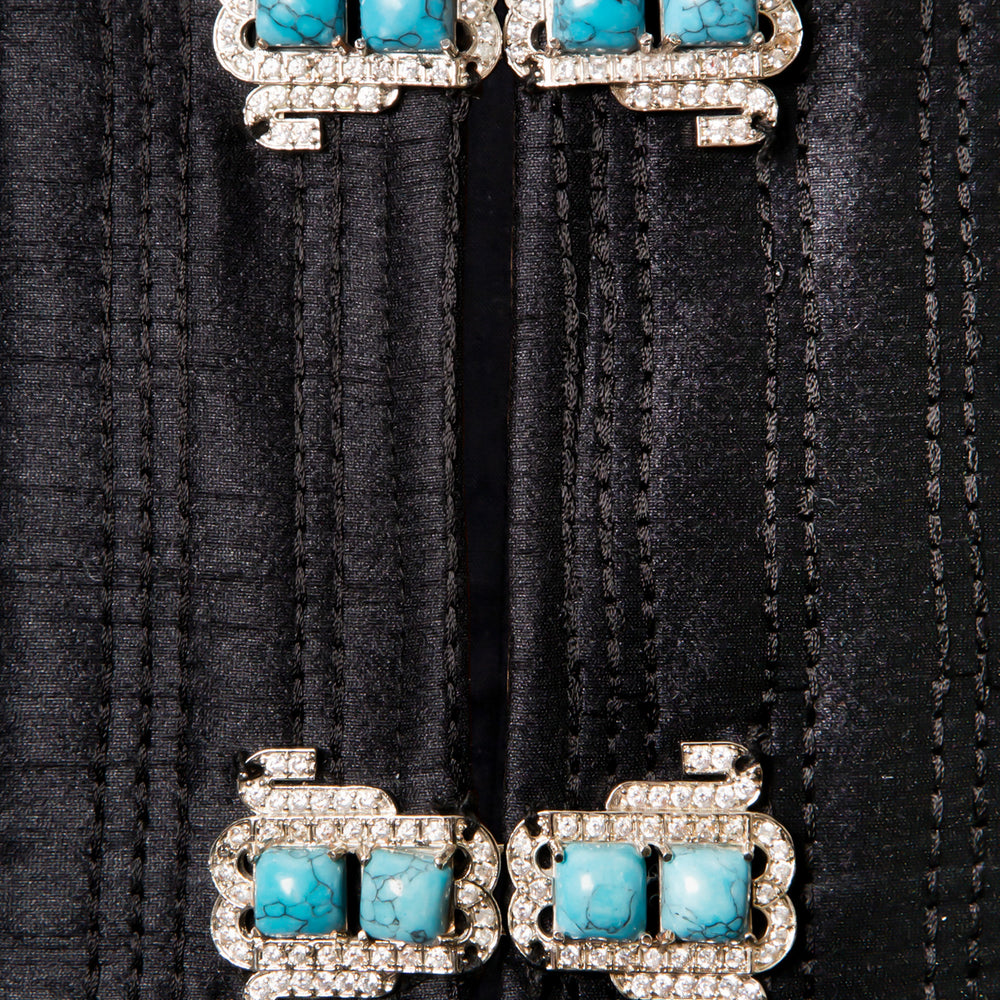 At the center, the closures are adorned with turquoise and semi-precious stones that catch the eye and stir the imagination. Each one is a small jewel in itself, echoing the intricate artistry of Persian adornments, and honoring a legacy of beauty and detail.