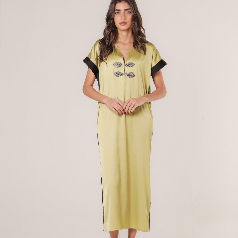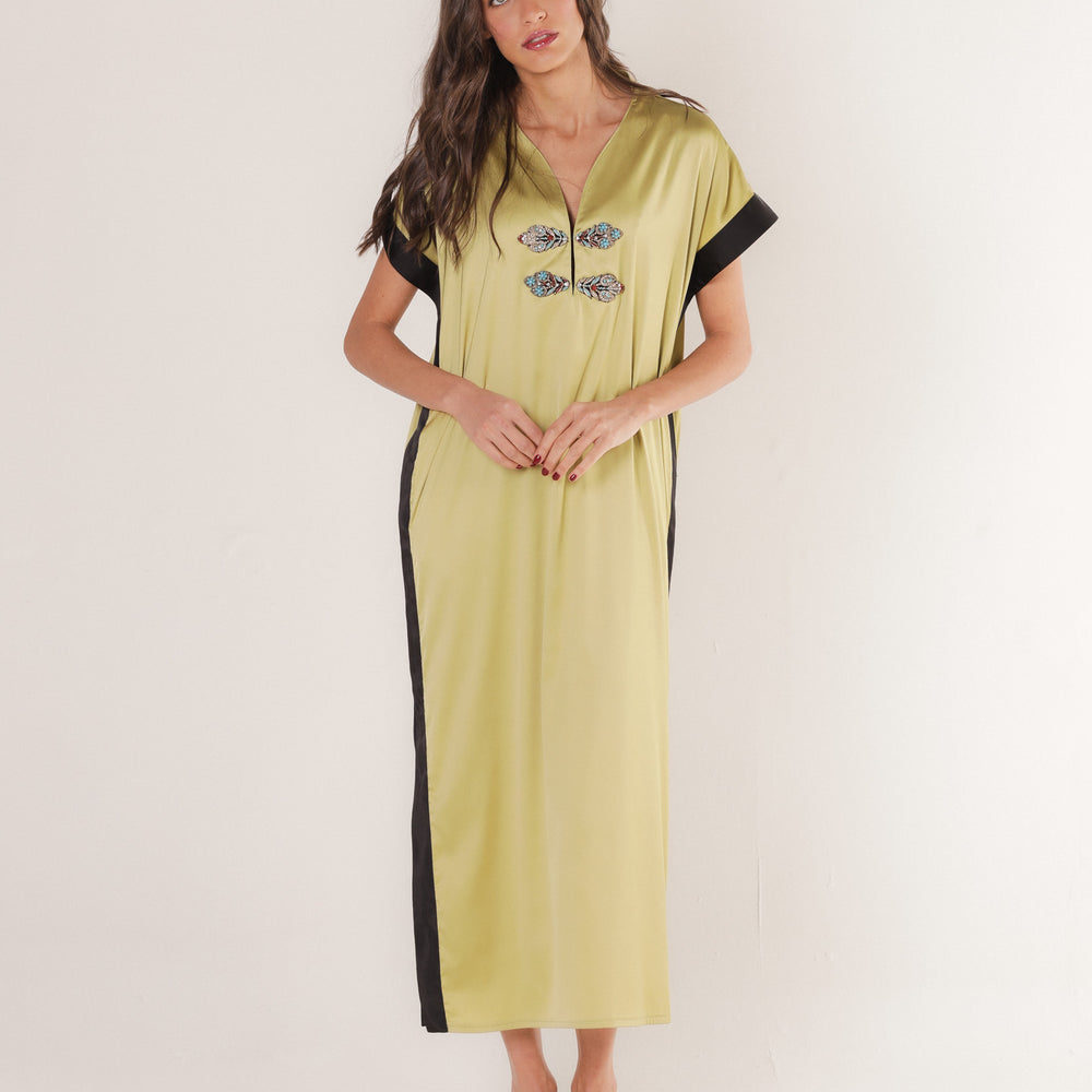 From the intricate beadwork to the artisanal hooks, each detail reflects the savoir-faire and soul poured into every Rose Garden creation. An ode to graceful versatility, the Persiana Kaftan effortlessly transitions from day to evening and from city streets to distant shores.